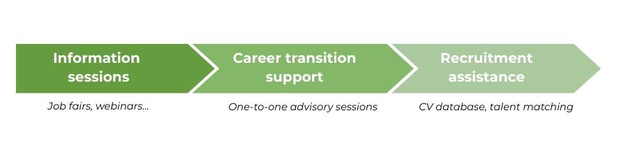 - Organize group information sessions to present candidates with specialized “digital sector” services